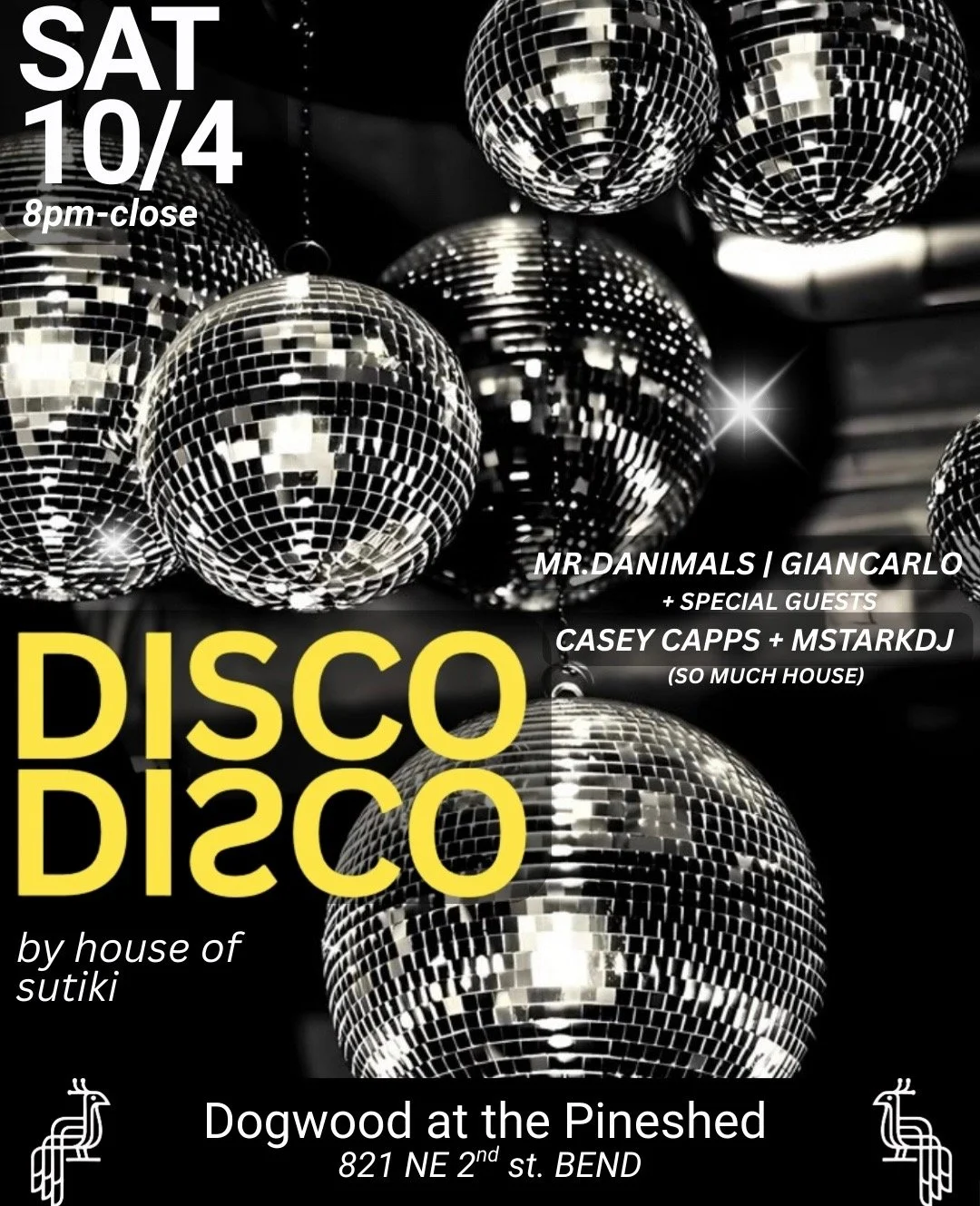 Get ready for a night of glitter, groove, and nonstop beats as House of Sutiki brings Disco Disco to Dogwood at the Pineshed.