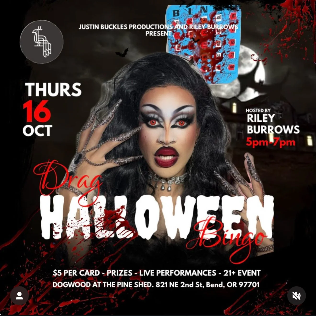 Spooky season gets fabulous at Dogwood at the Pine Shed! Join Justin Buckles Productions and Riley Burrows for a special night of Drag Halloween Bingo packed with thrills, chills, and fierce performances.